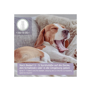 Vor Gebrauch leicht schütteln. Je nach Bedarf 3 – 5 Sprühstösse auf den Schlafplatz, die Decke oder in die Umgebung des Tieres verteilen. Bitte einen Sprühabstand von etwa 20 cm einhalten.