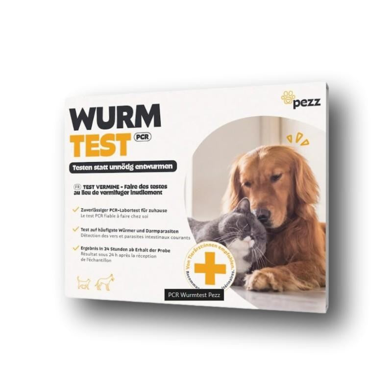 Pezz Wurm Test wird genutzt um: Einfach und schnell zuhause auf die häufigsten Wurmarten/Parasiten testen: Spulwürmer, Peitschenwürmer, Hakenwürmer, Kokzidien, Herz- & Lungenwürmer, Bandwürmer, Haarwürmer und Giardien. Dank PCR-Verfahren ist ein Befall auch mit nur einer Probe mit hoher Genauigkeit feststellbar.
